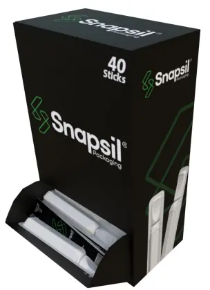 Firm, non-squeezable single-use snap stick. Best for consistent portion sizes and clean snap-open.